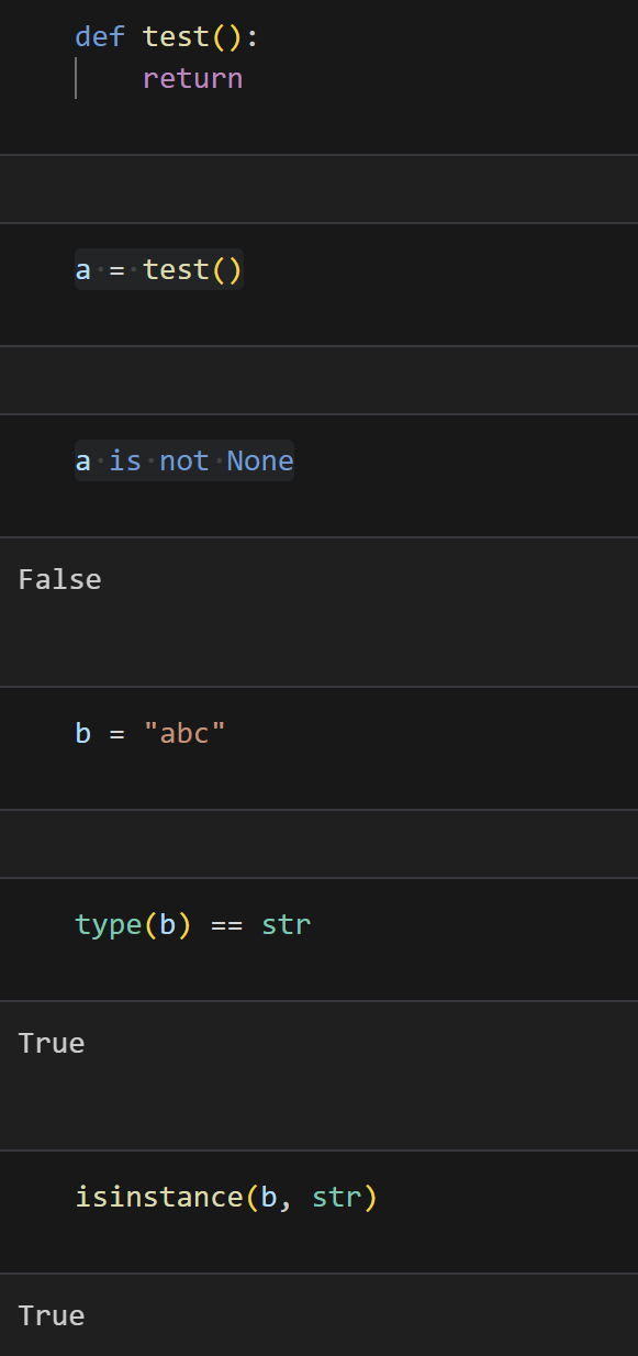 - isinstance(값, 타입): 결과가 내가 원하는 타입(예: int, str)이 맞는지 확인 (True/False).