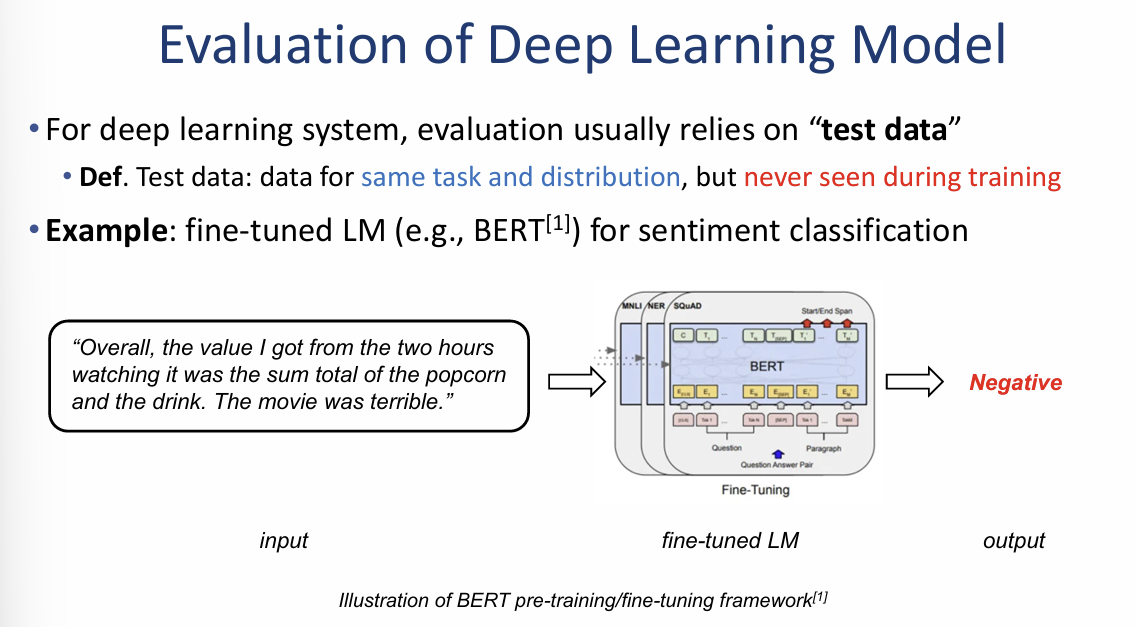 이미지는 감성 분류(Sentiment classification) 태스크를 수행하는 미세 조정된 언어 모델(예: BERT)의 평가 과정을 보여줍니다.