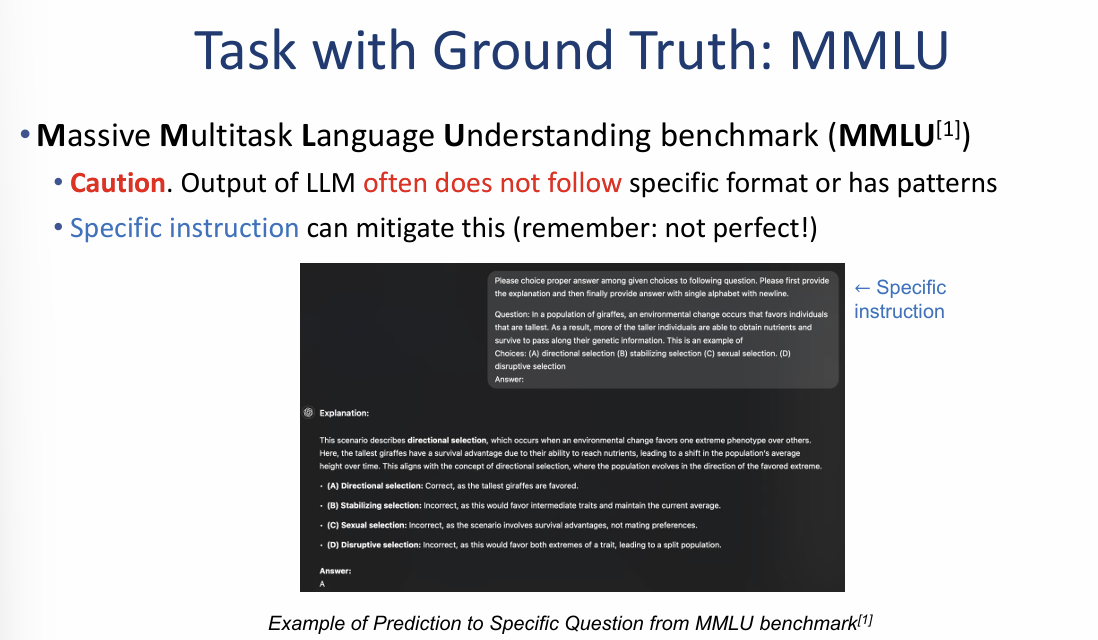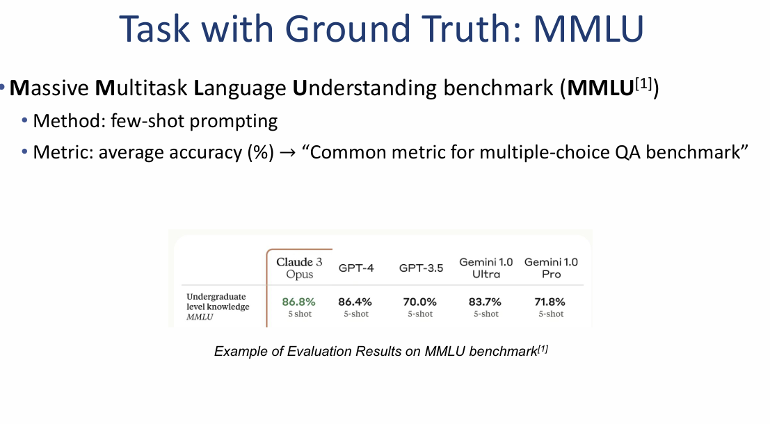 MMLU 벤치마크 평가 방식 및 결과 (Task with Ground Truth: MMLU)