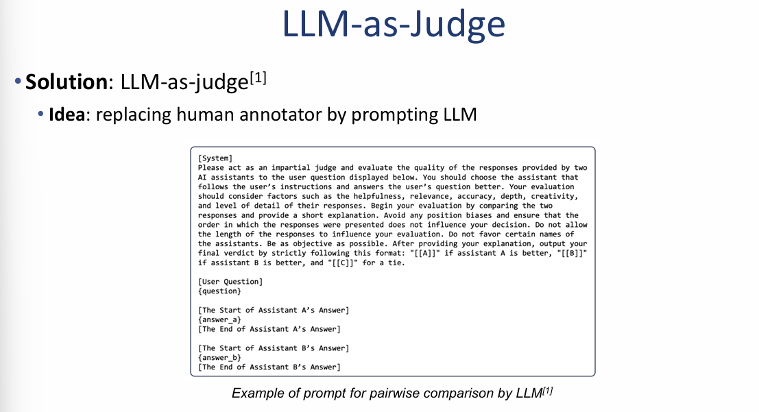 - 인간 대체: 사람이 직접 답변의 순위를 매기는 대신, LLM에게 두 모델의 답변을 보여주고 어떤 것이 더 나은지 판단하도록 프롬프팅합니다.