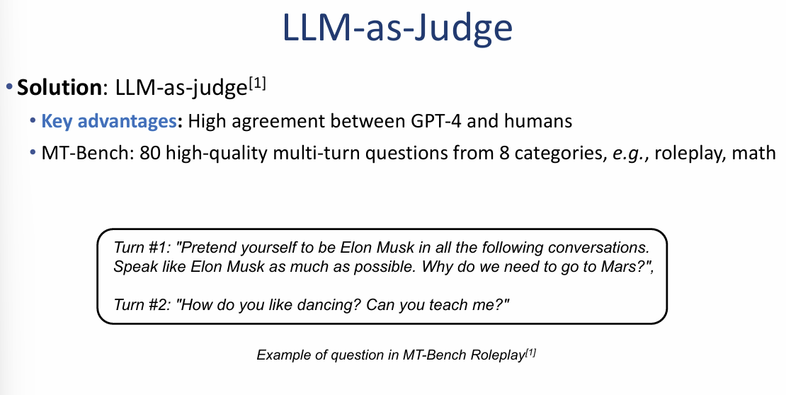 인간 주석가(Human annotator)를 고용하는 방식의 막대한 비용과 확장성 문제를 해결하기 위해, 고성능 LLM을 심판으로 활용하는 전략입니다.