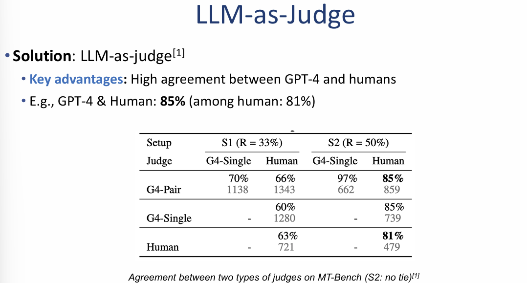 - 비교 데이터: 이는 인간 평가자들끼리의 일치율(81%)보다도 높은 수치로, GPT-4가 다수의 인간 선호도를 매우 정확하게 대변할 수 있음을 의미합니다.